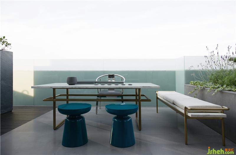 踏上懸空而輕盈的樓梯,迎面而來的是戶外茶室,為了讓視野更加純粹和安逸,四周的欄桿用磨砂玻璃加高,即保護(hù)了隱私,又把天空以外的東西給遮擋掉;泡上一壺清茶,沒有世間物的繁雜,讓心情更加豁達(dá)。室內(nèi)設(shè)計(jì)師