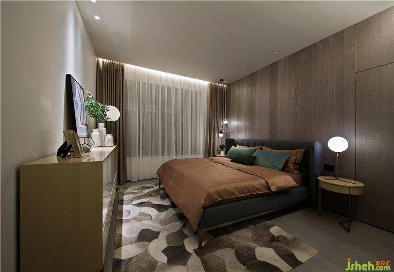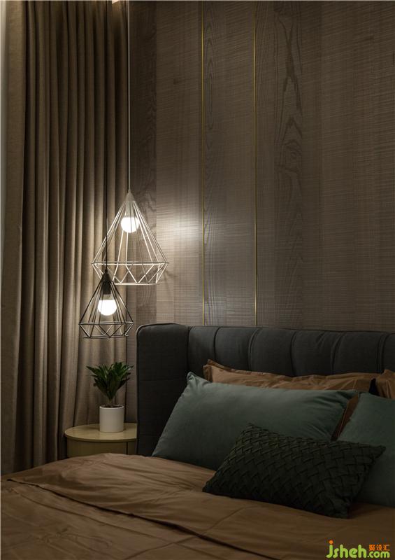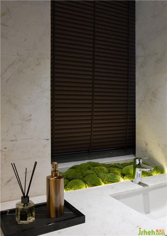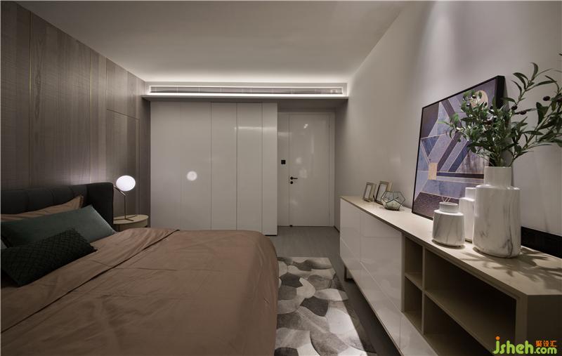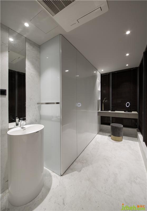 進入主臥,偌大的白色衣櫥,實際只有一半可以使用,另一半衣櫥空間留給了公衛(wèi)的淋浴房;床背景延續(xù)客廳背景墻的做法,整體而大方,推開背景的隱藏門,有種豁然開朗的感覺,兩面的落地玻璃窗呈現了無敵的視覺景觀,這個空間融合了主衛(wèi)和衣帽間,由于是從陽臺空間演化而來的,取消了淋浴房,避免大量的水帶來的各種問題。室內設計師