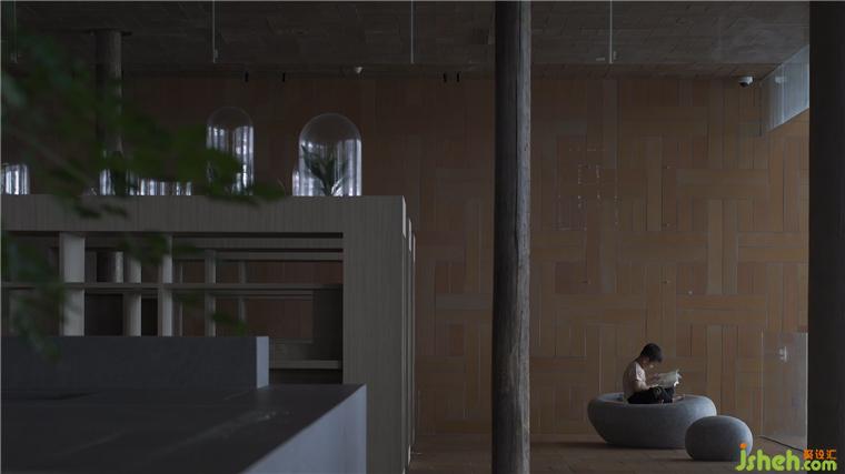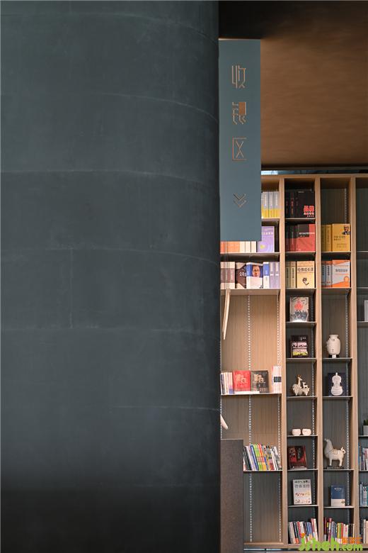 機(jī)場(chǎng)館設(shè)計(jì)相較于傳統(tǒng)書店的商業(yè)性,“母親的房子圖書館 · 機(jī)場(chǎng)館”的收銀區(qū)被特意設(shè)置在后區(qū)角落一個(gè)內(nèi)凹的“負(fù)空間”,保留基本功能的同時(shí)不過多地強(qiáng)調(diào)與凸顯,弱化整體的商業(yè)屬性,讓整個(gè)空間給人帶來更多的自在與閑適。