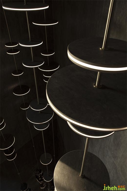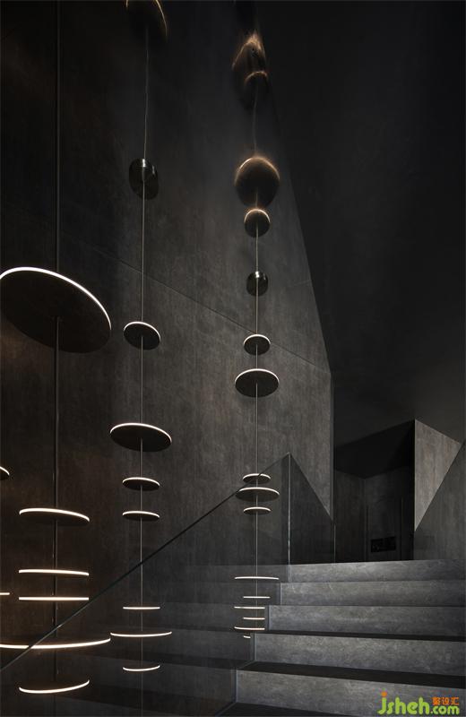建筑內(nèi)構(gòu)、裝置藝術(shù)、光影美學(xué)等手法,皆被納入空間的表達(dá),讓空間跳脫出形式本身的靜態(tài)桎梏,人隨光行,由視覺牽引著行走,形成了空間動線上的延伸感。
