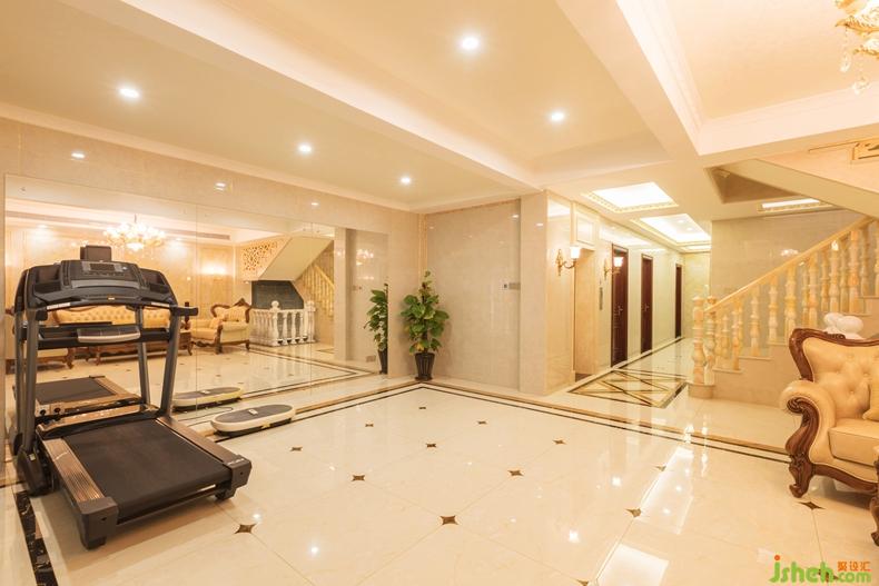 在地下室設(shè)計(jì)了一個(gè)客房、視聽室、工人房、客衛(wèi)、健身房及視聽房。戶外是帶有中式風(fēng)格的園林,有假山、水景等園林元素,讓人有一種回歸大自然的感覺,而健身房內(nèi)為了增加空間的視覺,用了大量的鏡面,而樓梯底下流水潺潺與戶外水景相通,渾然一體,同時(shí)也增加了地下室的空氣流動。視聽室采用美室風(fēng)格做設(shè)計(jì),實(shí)木,真皮硬包,雕花玻璃,大理石,鏡面不銹鋼……現(xiàn)代與古典的碰撞。古典而又時(shí)尚…..室內(nèi)設(shè)計(jì)師