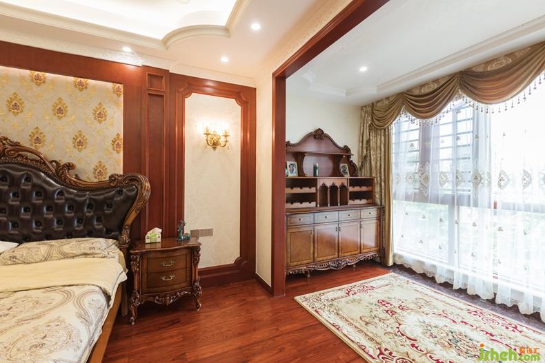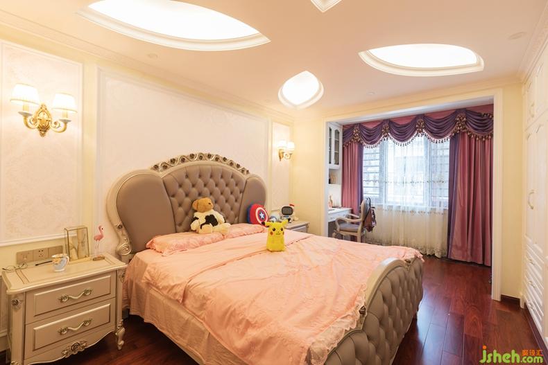 三樓為女兒房,男孩房及主人房,女兒房以四葉草的粉色調(diào)為主題,四葉草代表著真愛(ài),健康,名譽(yù),財(cái)富。體現(xiàn)出了設(shè)計(jì)師的細(xì)致用心。主人房的臥室與主衛(wèi)的墻體背景都是雕花墻布,衛(wèi)生間的玫瑰花馬賽克與馬桶后的雕花等細(xì)節(jié)設(shè)計(jì)無(wú)不體現(xiàn)出花開(kāi)富貴的主體,整體風(fēng)格散發(fā)出尊貴、奢華的氣息。