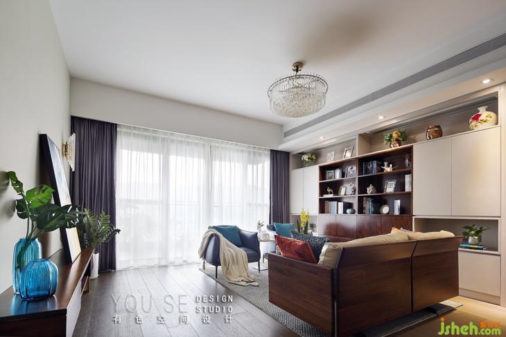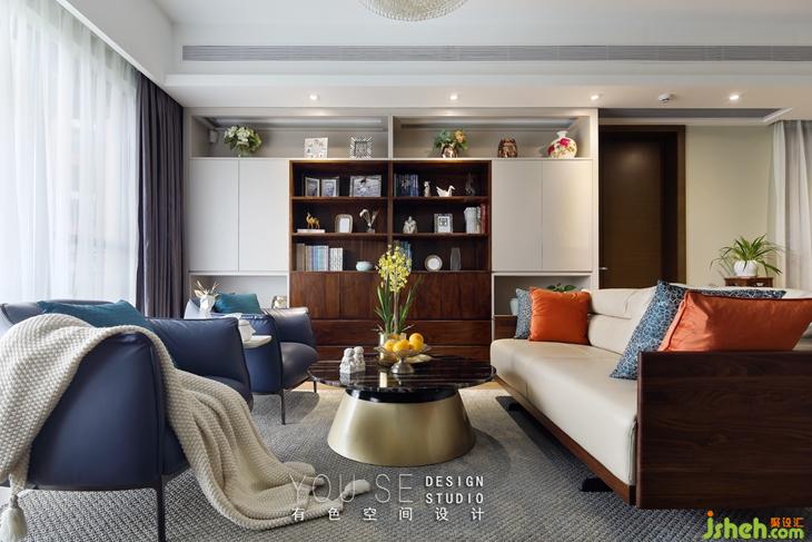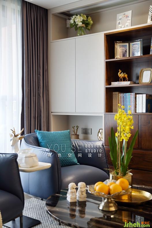 整面的書柜在客廳不僅承載收納功能,也要有美觀的體驗(yàn),設(shè)計(jì)師精心設(shè)計(jì)的書柜,很有層次的展示陳列。