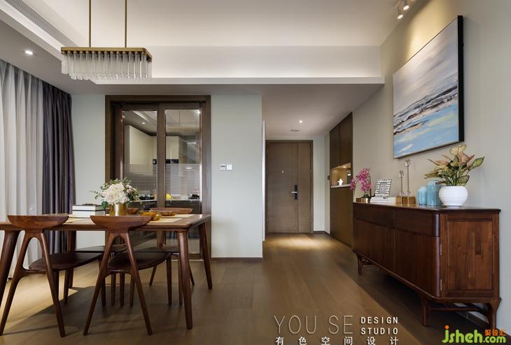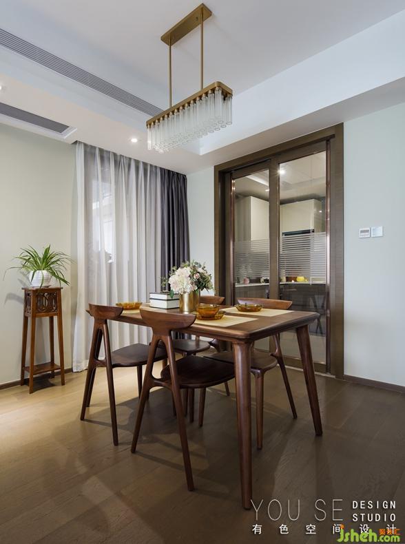 簡約的餐桌風(fēng)格,配上頂部現(xiàn)代風(fēng)的吊燈,唯愛與美食不可辜負。