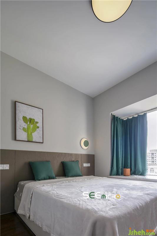 次臥沒有過分的裝飾,只呈現(xiàn)出最舒適、優(yōu)雅的居住環(huán)境,灰色的背景墻搭配一副簡(jiǎn)約的裝飾畫便能散發(fā)出一種靜謐祥和的韻味。裝修設(shè)計(jì)
