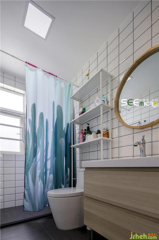 客衛(wèi)以淺色基調(diào)為主,原木色的洗漱臺和洗漱鏡跟整個空間相關(guān)聯(lián),亮色的浴簾,讓空間更加活潑靈動,好看又舒服的衛(wèi)浴空間,一定是整潔且明亮的。
