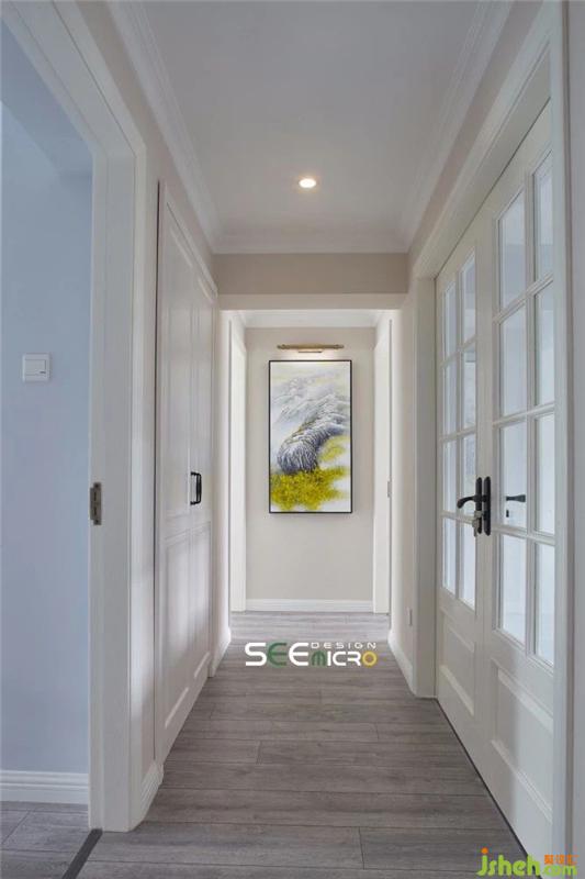 步入門廳,目之所及的是過道盡頭的一幅藝術(shù)畫,設(shè)計(jì)師特意以書房的雙開門為過道納入了充足的光線,打造出一條通透的藝術(shù)長廊,使賓客入門便如同置身藝術(shù)展館。