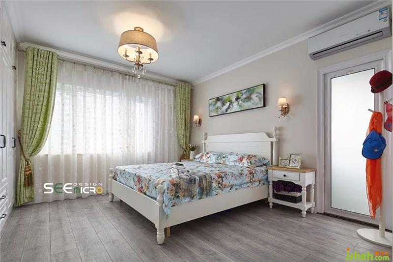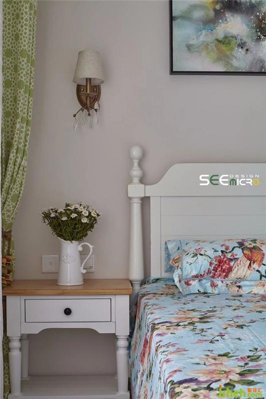 由于女主人喜歡小清新風(fēng)格,因此主臥的整體設(shè)計(jì)風(fēng)格偏文藝——素雅的嵌入式衣柜、簡(jiǎn)約舒適的實(shí)木大床、寓意美好的印花床品、線條流暢的淡綠色落地窗簾與墻上一幅耐人尋味的抽象畫,整個(gè)空間以舒展而優(yōu)美的線條回歸初心的美好。裝修設(shè)計(jì)