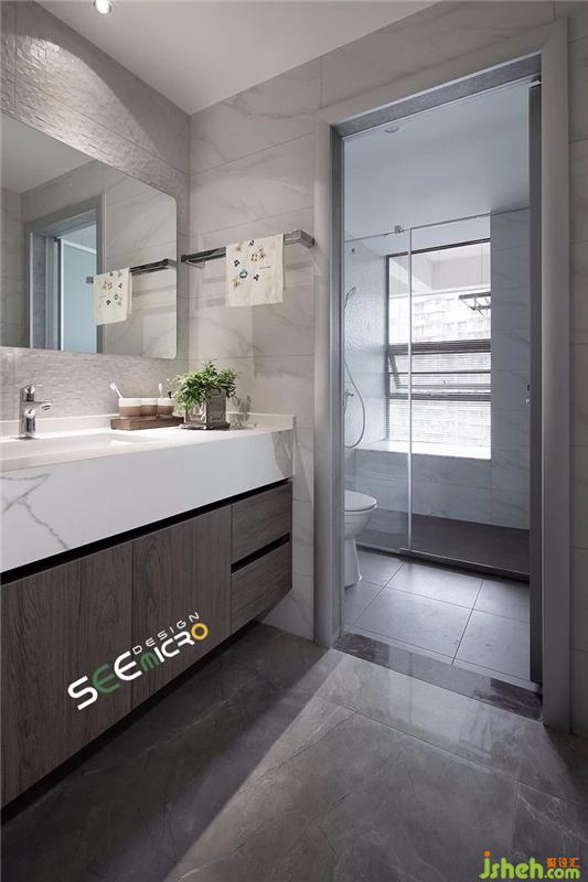 干濕分區(qū)無疑是好評如潮的處理方式,極簡的瓷磚搭配,加厚的臺面造型都是美感的表達形式。裝修設(shè)計