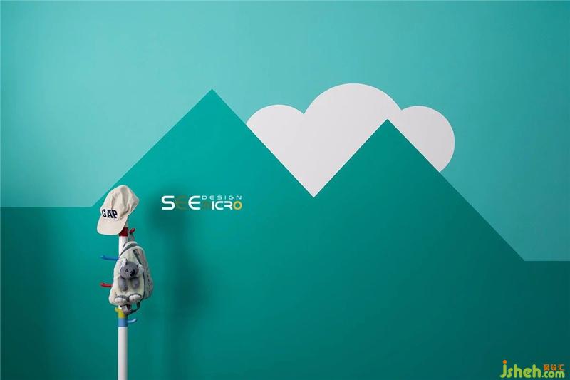 男孩子自己的空間做了藍綠色系墻面,入門一整面墻的位置還用同色系做了俏皮的黑板墻。裝修設(shè)計