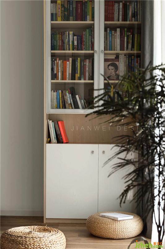 沙發(fā)旁特意設計了書架,容量大大的,也方便拿取。