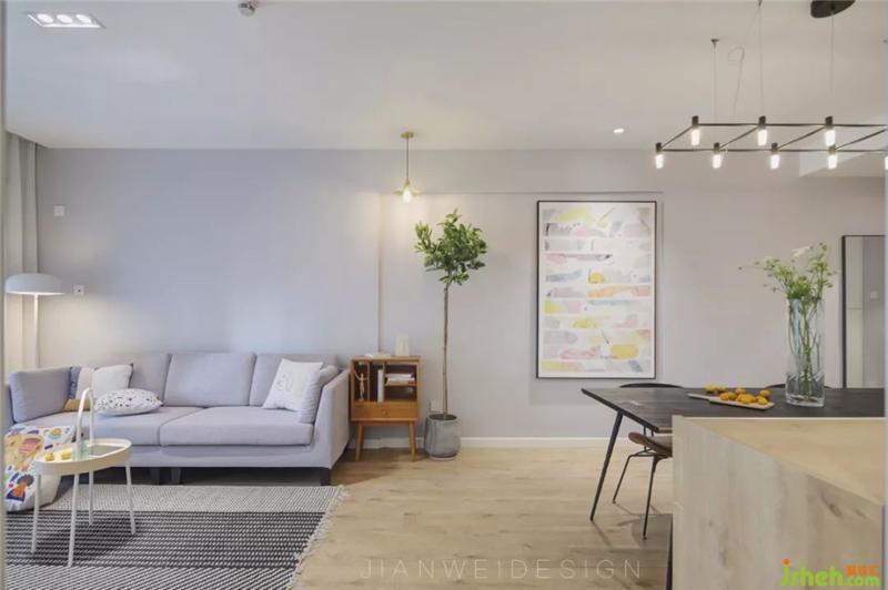 女屋主是理科高材生,男屋主是金融類從業(yè)者,希望新家溫馨、素凈、淡雅,但不要過多污染硬裝,傾向于環(huán)保而又有設(shè)計感的家。設(shè)計師選用了飽和度低,視覺感受更加柔和的莫蘭迪色,能給人以極溫柔的精神慰藉。