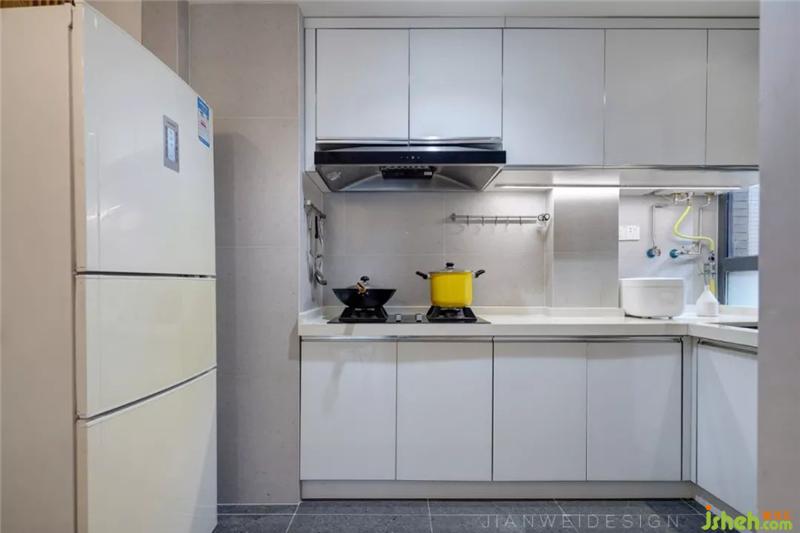 本次設(shè)計中,設(shè)計師把原本使用局促的廚房做了改動,將原本的小生活陽臺納入廚房空間,做了L型廚房,讓下廚的操作流程更順暢。原兒童房的墻體做出了改動,定制轉(zhuǎn)角收納柜使空間收納倍增,提高了美觀性的同時更加強了實用性。裝修設(shè)計