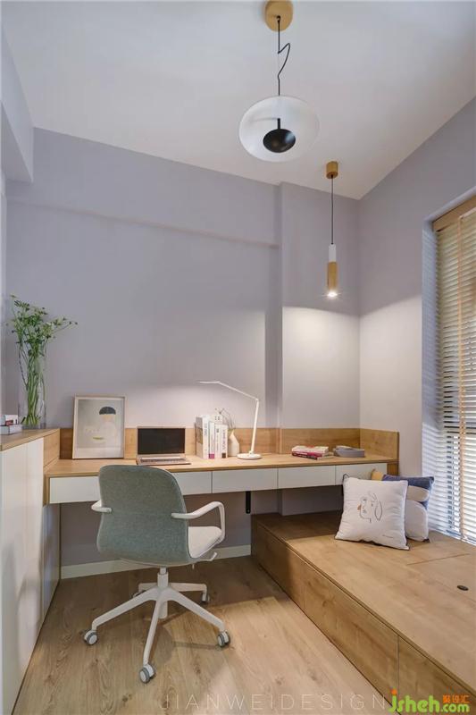 一心不可以二用,但是一室可以三用。這是一個集客房、儲物為一體的書房。榻榻米上鋪上一層軟墊即可方便朋友留宿。桌上的臺燈或上方的筒燈可營造書房的安靜之感;若是工作場景,也無懼照明。