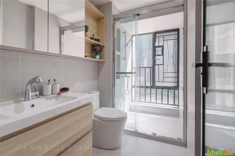 主衛(wèi)的原木柜和素色磚,搭配出干凈整潔的秩序感。裝修設計