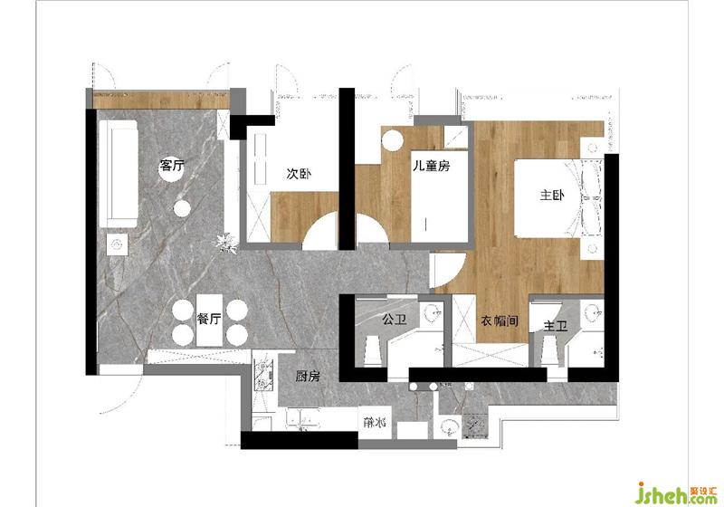 戶型是標(biāo)準(zhǔn)的98平三房兩衛(wèi)配置,基于原戶型的格局上,為了追求居住舒適感最大化,做了很多巧妙的調(diào)整。