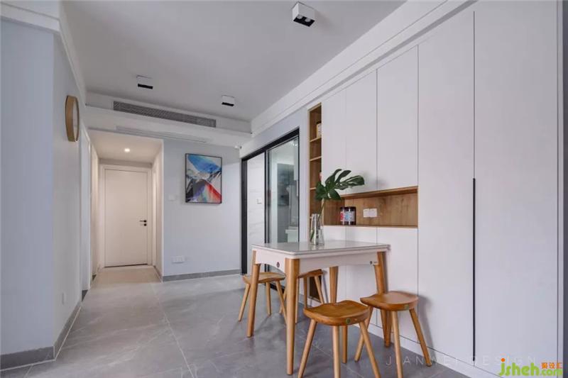 對(duì)于一個(gè)大家庭來說,收納尤為重要。潔白的定制柜,原木色加以點(diǎn)綴,干凈而簡約。經(jīng)過設(shè)計(jì)師精心設(shè)計(jì)過的柜體,功能分明,很有層次的陳列和儲(chǔ)物。