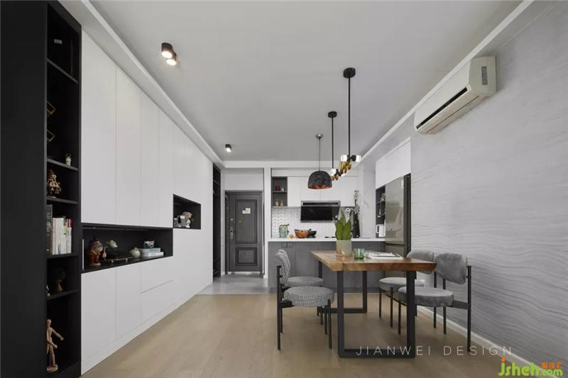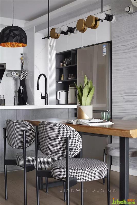 在黑白灰的空間里,搭配溫潤的木質(zhì)元素進行調(diào)和,讓整個空間變得豐富又和諧。