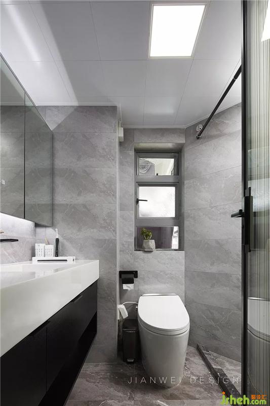 設(shè)計(jì)師對(duì)公衛(wèi)的布局重新進(jìn)行合理規(guī)劃,超大的洗手臺(tái)滿足了屋主洗漱和化妝的需求。鏡柜和底柜提供了足夠的收納空間,使臺(tái)面始終保持著整潔的狀態(tài)。
