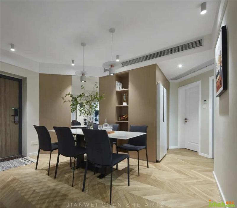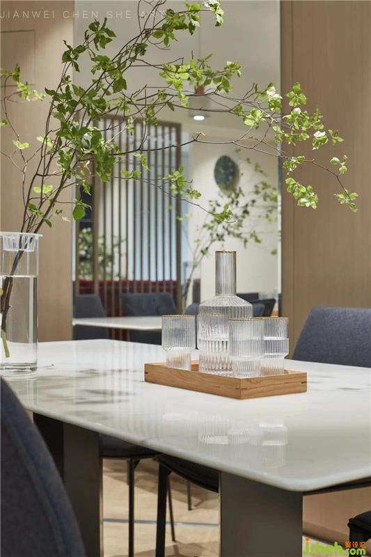 在光影不用映射下,除了日常家庭用餐之外也能作為客人拜訪時(shí)自在舒適的交談場(chǎng)所。