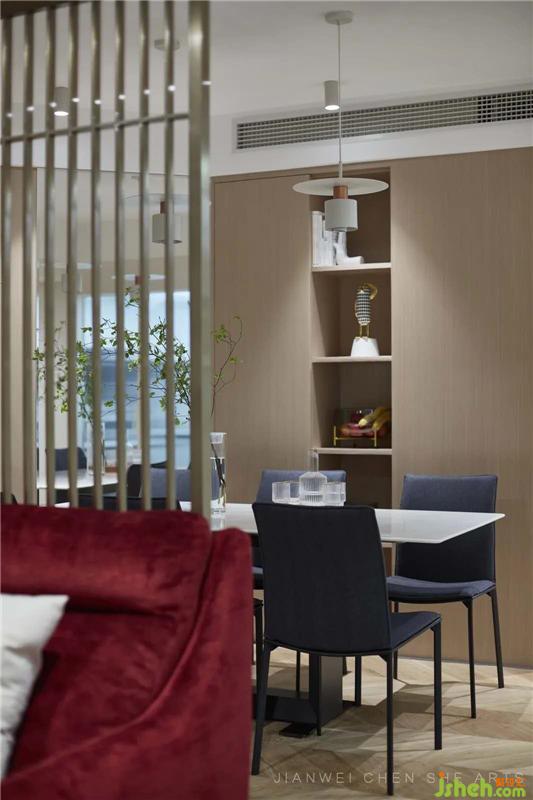 異形三角柜的設(shè)計(jì),為餐廳騰出一個(gè)展示空間,工藝品“希望”讓整個(gè)空間更有層次感。室內(nèi)設(shè)計(jì)師