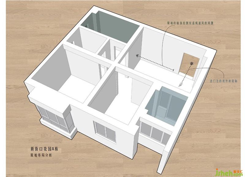 次臥長度距離過短,影響床的放置,將與之相鄰的公衛(wèi)厚墻改為薄墻,以此延伸次臥長度,更好的利用空間深圳室內(nèi)裝修設(shè)計(jì)。