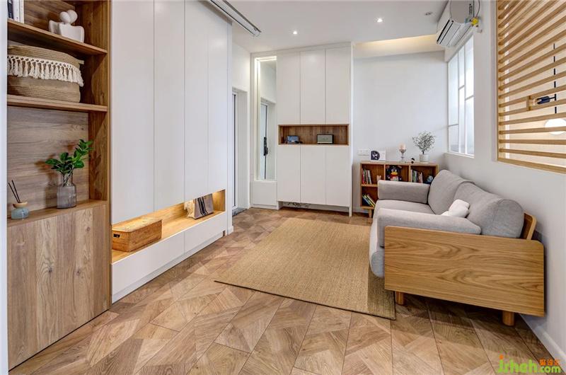 在客廳設(shè)計(jì)過程中,設(shè)計(jì)師打掉厚實(shí)的墻體,設(shè)計(jì)成木質(zhì)的鏤空屏風(fēng),延伸空間視覺效果。