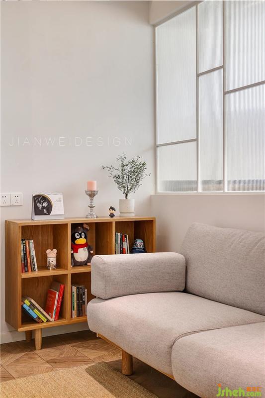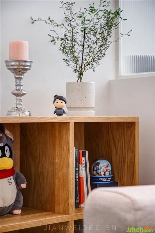 窗臺下的邊柜精致小巧,可以在這個(gè)架子上放上自己喜歡的書籍和小擺件
