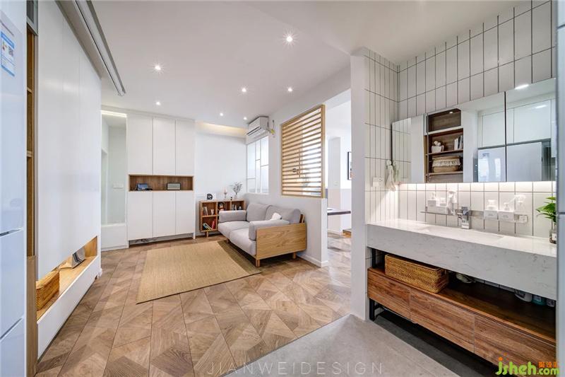 洗漱區(qū)放到了外面,這樣衛(wèi)生間里外的功能,可以同時使用