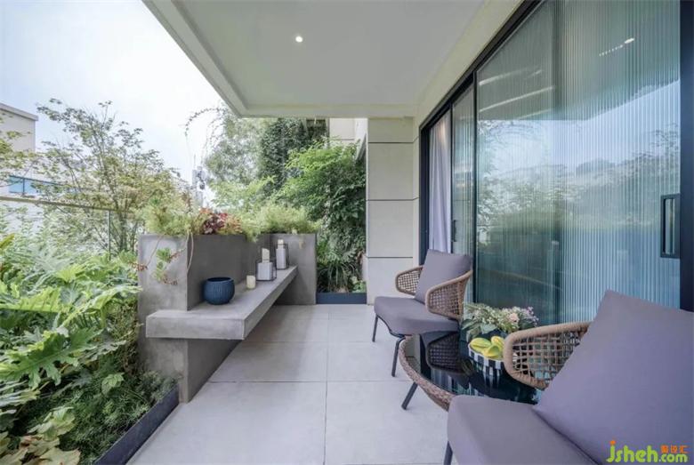 個性化的木制藤椅與柔軟的布藝坐墊將陽臺點亮,