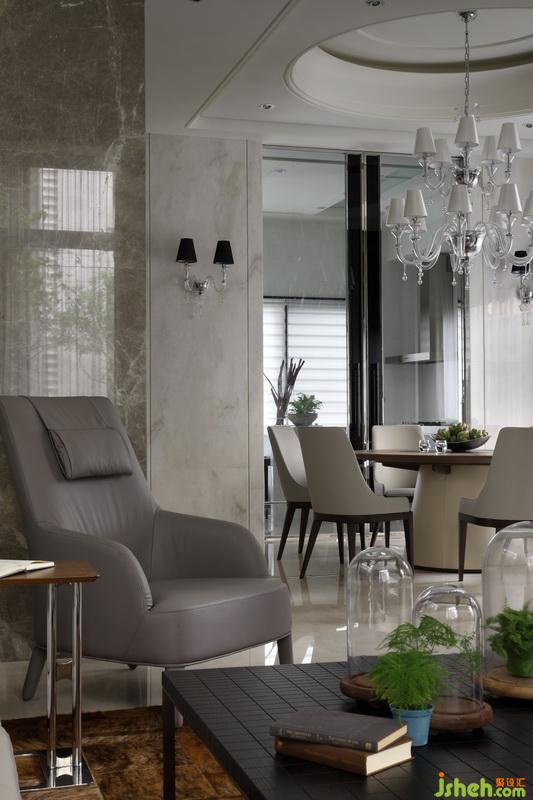蒙太奇的陳設(shè)手法傳遞出蘊(yùn)函不同化特質(zhì)的雅,本案室內(nèi)設(shè)計(jì)師設(shè)計(jì)以蒙太奇減法設(shè)計(jì)創(chuàng)造簡(jiǎn)約大器的生活氛圍,空間依別墅樓層由下而上循序安排公共空間、主臥樓層、小孩寢居樓層及休閑娛樂(lè)樓層。精致的大理石鋪陳出客餐廳的大器奢華質(zhì)感,適當(dāng)?shù)睦苗R面材質(zhì)結(jié)合時(shí)尚品味,在屬于西方的簡(jiǎn)約線條中帶入東方柔和不張揚(yáng)的色調(diào),為空間注入人文美學(xué)的優(yōu)雅,像一位沉浸于東西方文化的紳仕,個(gè)性溫文儒雅,態(tài)度從容沉穩(wěn)謙和有禮,與他相處你會(huì)卸下心防,感到坦然而自在,室內(nèi)設(shè)計(jì)師進(jìn)而樂(lè)于分享生活的美好。客餐廳空間雖然各自獨(dú)立,卻藉由動(dòng)線與視線串連,隔間墻面、過(guò)度轉(zhuǎn)角區(qū)域皆能看到量身打造的藝品陳設(shè)細(xì)節(jié),在動(dòng)、視線牽引下彼此借景相融,無(wú)論從那個(gè)角度觀賞都是一幅美好的畫作。
