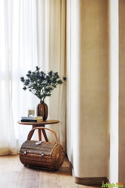 隨風潛入客廳,花磚、溫潤的老木頭、古樸的瓷器,滿盈著一股南洋風情,公共區(qū)域的整體色彩不拘泥完全統(tǒng)一,簡單樸素與不落俗套并行,點燃香薰蠟燭,使其氛圍愈加溫柔。在做設計的時候我們還擔心業(yè)主不能接受天花也刷同色系的涂料,但是看見效果圖后業(yè)主很開心的表明她可以接受天花上也刷涂料,不可否認,出來的效果非常好,天花和墻面予以同一種質(zhì)感的涂料,那種自然的肌理就像攀爬在這個新家的生命根節(jié)上一樣,是一幅完全屬于他們家的畫作。在整體設計上,不論是硬裝還是軟裝,亞運城天峯家裝設計我們都沒有用繁雜的造型去堆砌,只是以簡潔有力的線條刻畫整個空間,軟裝則采用布藝、木質(zhì)、藤編、棉麻這些自然質(zhì)感的材料,溫潤的木質(zhì)結(jié)合柔和的肌理感,不同材質(zhì)之間的碰撞,在空間里勾勒出質(zhì)樸松弛的美感。