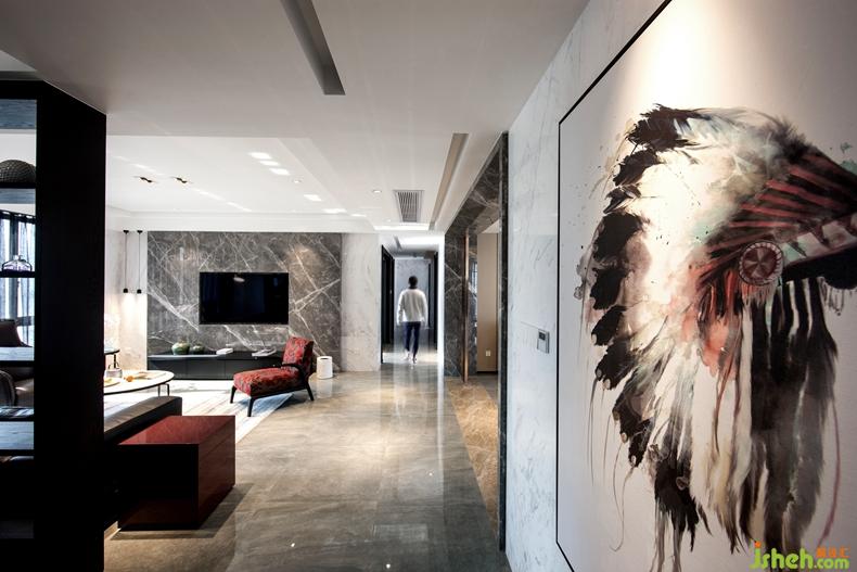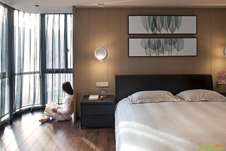 對了,特別分享一下品茗室,利用原有的陽臺在二樓右手邊,劃分出一個(gè)區(qū)域,主人好茶,干凈視野遼闊的品茗室。木飾墻面中隱藏著一個(gè)收納間,禪意的壁畫說大不大,剛好適合三倆好友談天說地。男孩房,女孩房各有一個(gè)室內(nèi)衛(wèi)生間,過道盡頭的主臥與更衣間同在一個(gè)區(qū)域。主臥采光極好,側(cè)邊的兩大扇黑色玻璃移門分別遮擋著主衛(wèi)和陽臺,我慫恿著主人浴缸不一定在衛(wèi)生間里,可以大膽的擺放在有落地玻璃的陽臺上,因?yàn)檫@里是28樓。白天你可看車水馬龍,夜晚你可觀燈火闌珊。室內(nèi)設(shè)計(jì)師