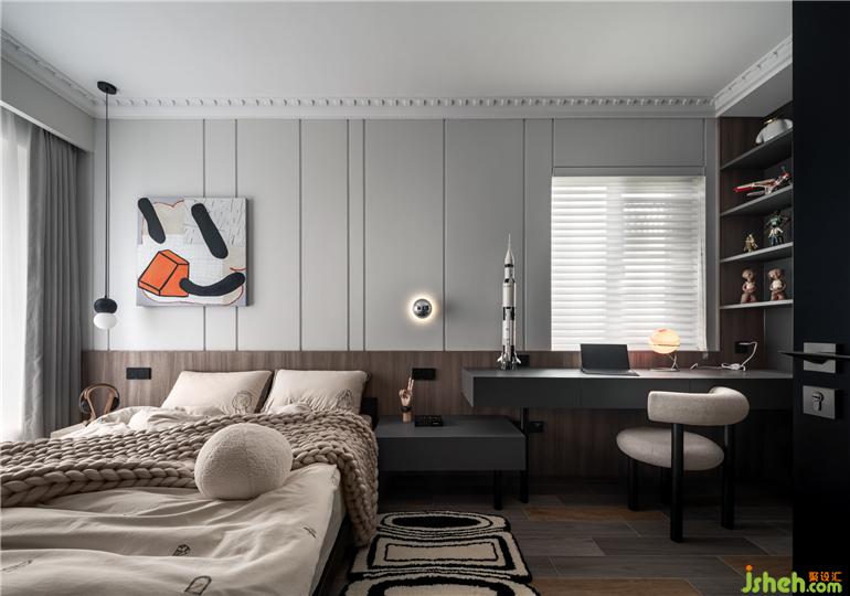 l 小孩房在布局上盡量預(yù)留更多的活動(dòng)空間,所以衣帽間和臥室區(qū)域沒(méi)有做分隔,只在靠墻的位置做了儲(chǔ)物,讓空間盡可能通透。
