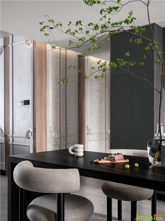 本案是在大面積的白色基調(diào)下,加入水泥灰,魅影黑,木飾面,在合適的比例下,武漢裝修設(shè)計(jì)讓布局、色彩與生活產(chǎn)生內(nèi)在聯(lián)系,使得心靈有種自然的回歸感。背景法式線條和木飾面的組合,現(xiàn)代與古典的碰撞,似乎不是一種風(fēng)格的材質(zhì),組合在一起,確意外的好看,無(wú)聲的述說(shuō)浪漫的生活情調(diào)。木色的加入同時(shí)也為空間注入一抹溫暖。主臥室背景木飾面與灰綠色石膏線條墻面搭配,營(yíng)造出自然復(fù)古的味道,小孩房則利用干凈利落的線條加木飾面的設(shè)計(jì),清爽冷靜,加上材料的質(zhì)感和比例分割,給空間帶來(lái)不一樣的氣質(zhì)。