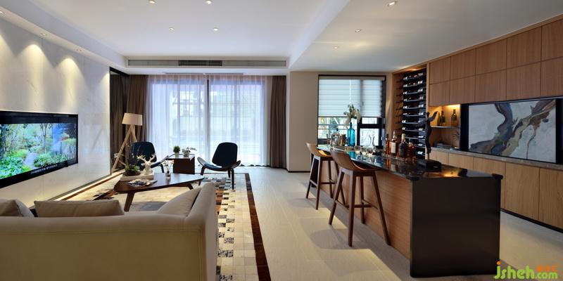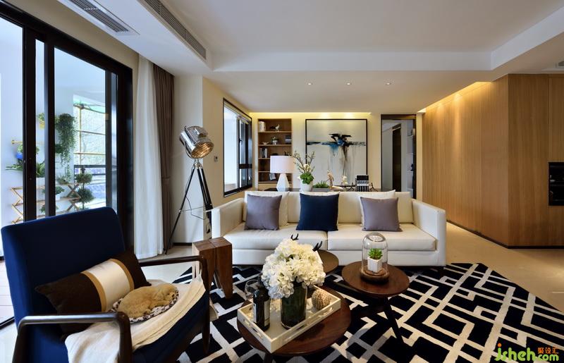 設(shè)計公司采用布藝家私的同時結(jié)合皮革、金屬、木質(zhì)材料的家具。采用淺木色米白色與黑色的互補色調(diào),極富時尚的現(xiàn)代氛圍,讓人感覺寬敞明亮的生活空間,穩(wěn)重而又不失現(xiàn)代時尚之感。
