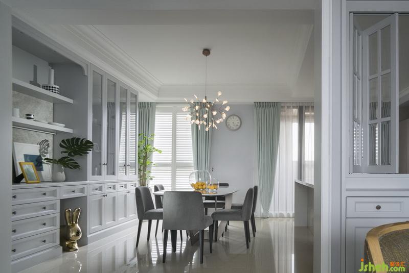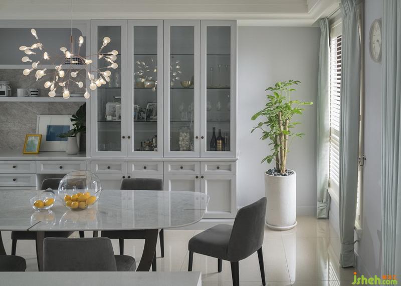 ▲餐廳-藍(lán)綠色系窗簾,令人神清氣爽,與淡雅舒適的基底相融,卻又體現(xiàn)出細(xì)膩的層次感。室內(nèi)設(shè)計師