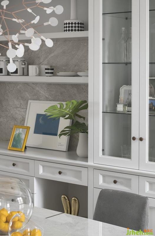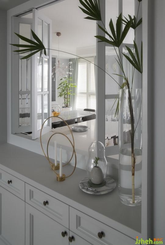 ▲餐廳細(xì)節(jié)-玻璃格子門是美式設(shè)計(jì)常見的元素,不僅令柜體更精致,透過窗扇還能連接內(nèi)外,營造不少視覺樂趣。