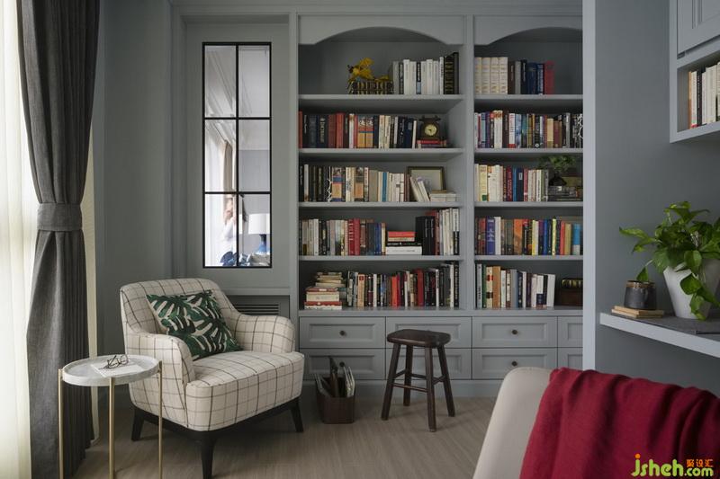 ▲書房-大大的書墻,總給人安定又沉穩(wěn)的感受,讓人想整個(gè)下午都待在這個(gè)書香角落。室內(nèi)設(shè)計(jì)師