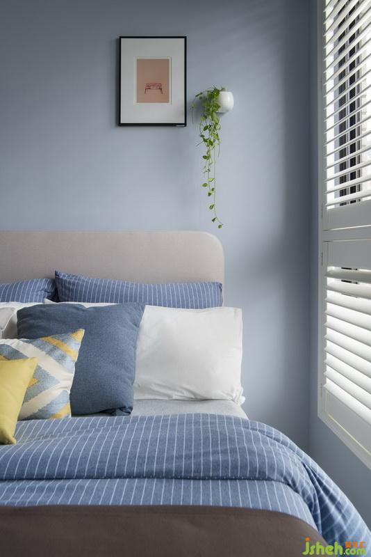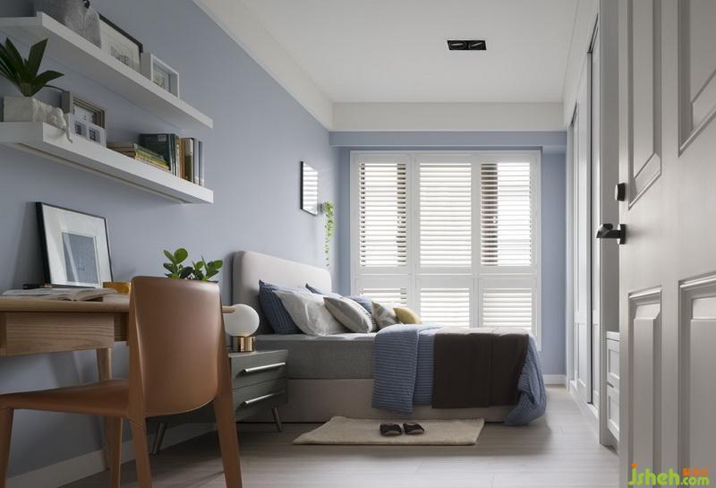 ▲小兒子房-淡藍(lán)與白展現(xiàn)舒適怡人的海洋氣息,加上從百葉灑下的細(xì)細(xì)光束,恬靜而美好。室內(nèi)設(shè)計(jì)師