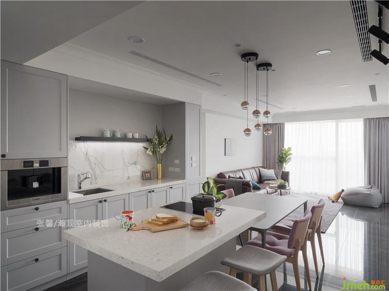 餐廳,我們劃分為輕食區(qū)及熱炒區(qū),輕食料理的中島臺面預(yù)留除濕機的位置,避免家電擺放造成空間的零碎感,而熱炒區(qū)以拉門相區(qū)隔,避免大火快炒時油煙四散。室內(nèi)設(shè)計師