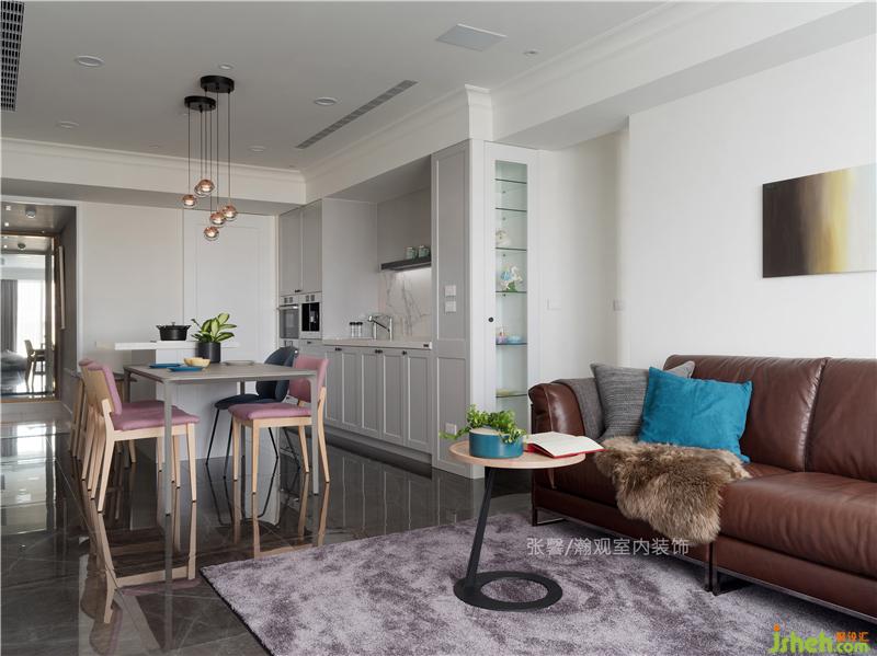 客廳以屋主喜歡的黑、白、咖啡色作為基底,淺色系的墻面搭配深色的地磚地坪,自然帶出沉穩(wěn)的利落感。考慮女兒們正是活潑好動時期,我們舍棄大茶幾,改以小邊幾,放大孩子們的活動空間,以確保安全不受傷。室內(nèi)設(shè)計師