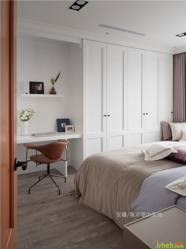 我們考慮到屋主夫妻的生活習(xí)慣,在臥房門后設(shè)置「穿了還不洗的衣服」掛置區(qū),讓空間更加貼近屋主夫妻的生活,不僅好看,也更加實用。室內(nèi)設(shè)計師