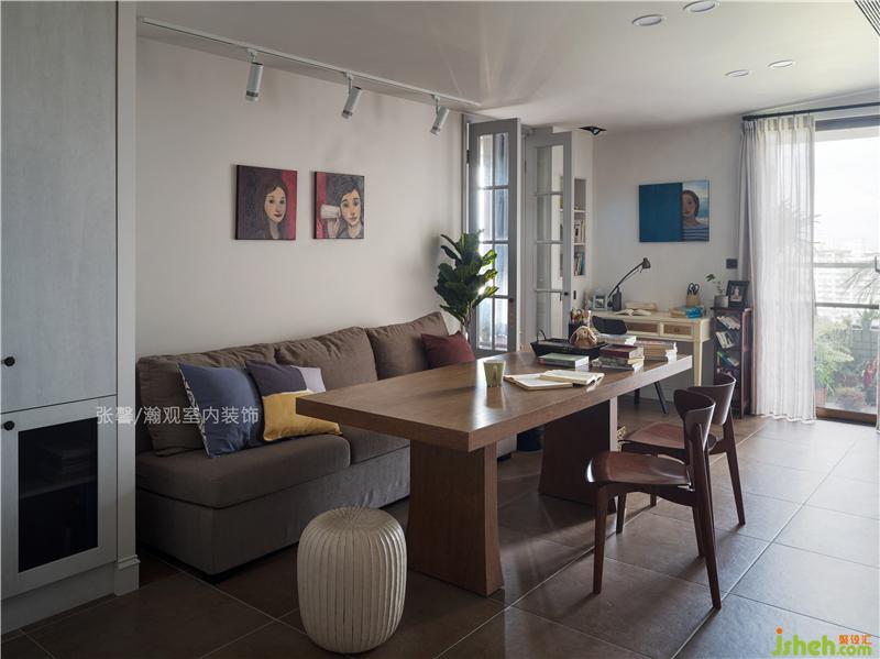 書(shū)房開(kāi)設(shè)兩道玻璃格子門(mén),空間成為環(huán)狀動(dòng)線(xiàn),讓客廳、餐廳以及書(shū)房互通,加大空間場(chǎng)域,關(guān)上門(mén)卻又各是獨(dú)立空間,互不打擾,靈活運(yùn)用空間格局。