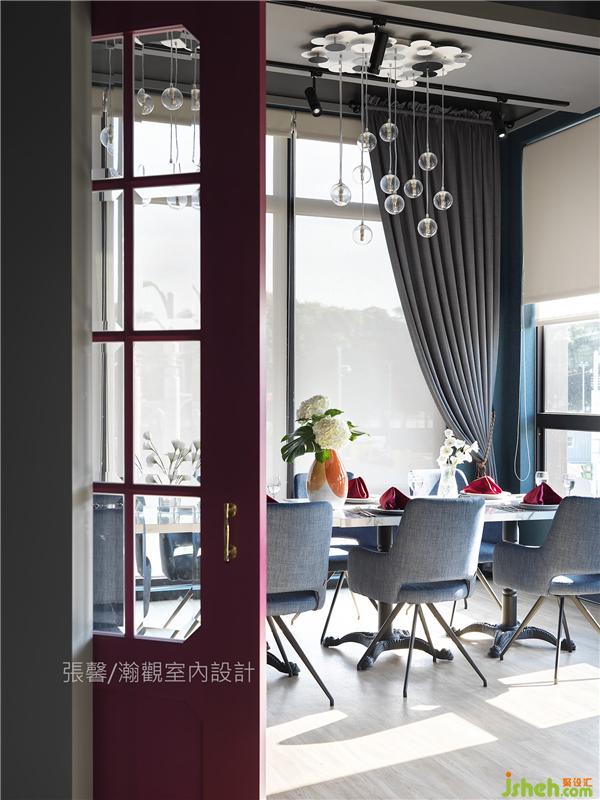藍(lán)綠色包覆的角落空間,再以對(duì)比紅色門(mén)扇點(diǎn)睛,擁有獨(dú)立鐵板臺(tái)、隱密空間、兩面臨窗的光線灑落,滿足絕對(duì)隱私的安心用餐空間。