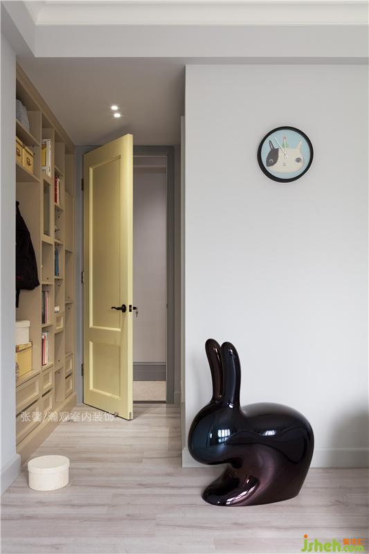 女兒房就以北歐風(fēng)格,凸顯出正值就學(xué)階段的漫天想象,擺放上所需的家具配置,以色彩作為活潑元素,留下未來風(fēng)格的變化性;門后設(shè)置錯(cuò)落的書柜,滿足機(jī)能性,隨性地?cái)[放都是一道景致。室內(nèi)設(shè)計(jì)師