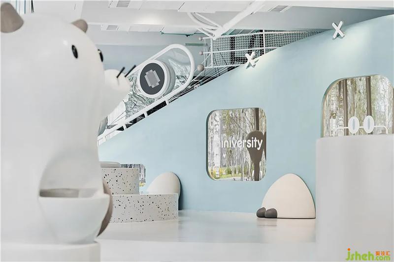 Pink, white, green, grey and orange, colourful colours and fantastic lighting arouse children’s curiosity about the world. As they enter the arena, they see Lovely Claw leisure stools designed by different nodes and magical sculptures, enhancing spatial diversity.