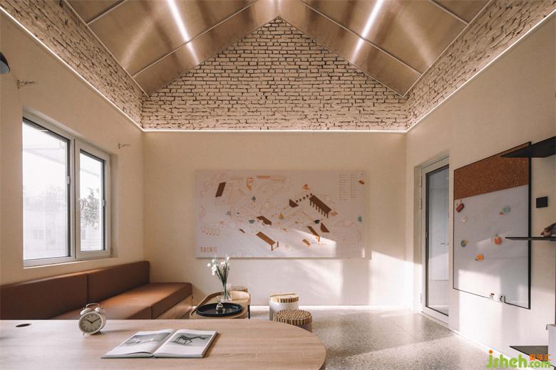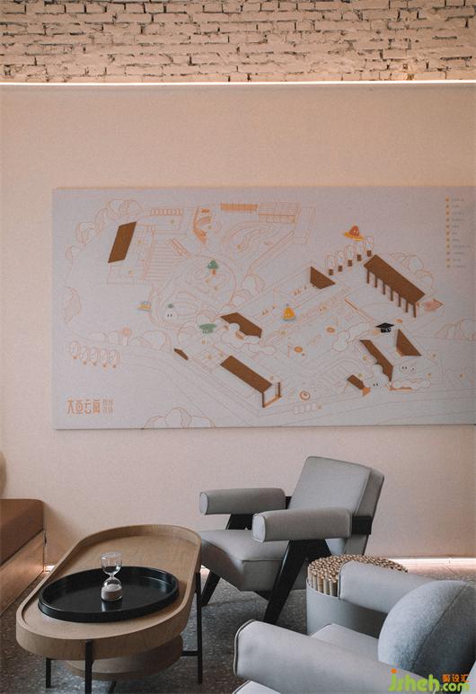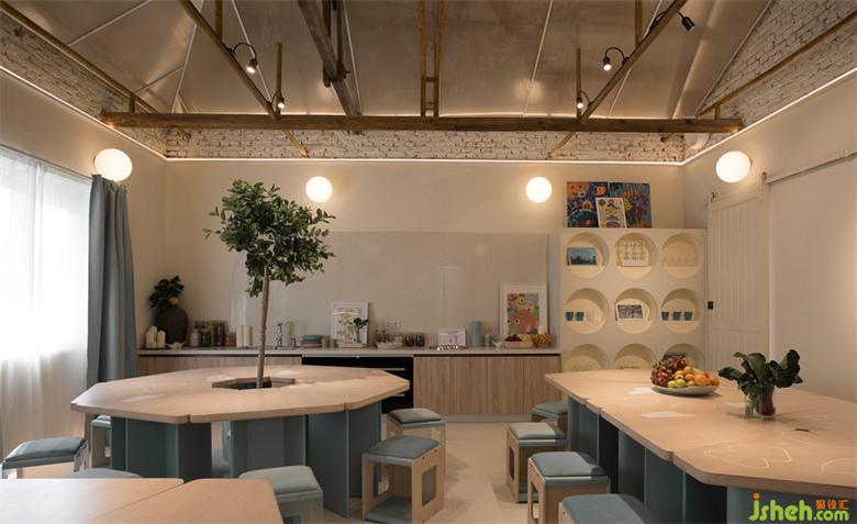 建筑連接起夢的起點,同時也為歸家的孩子打開一扇窗。高隊辦公室是每個小朋友來到媽媽農(nóng)場的第一站,也是邁入新世界的第一個“窗口”。木質(zhì)紋理的介入,讓材料與環(huán)境親密對話,特別繪制的農(nóng)場地圖讓空間“一目了然”, 開放柜照片墻則記錄著孩子們的點滴時光。
