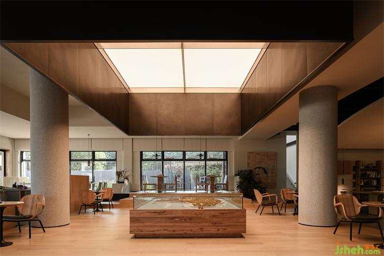 梓山湖半島是距離武漢僅1個多小時的車程的近郊度假地,拾光·打野餐廳設計作為梓山湖新城龍首半島區(qū)的復合型社區(qū)餐酒空間改造自原梓山湖半島窗口位置的原蜜盒酒店接待大堂建筑,“打野”在武漢話中意指“開小差”,拾光·打野的空間正是希望表達對日常規(guī)矩生活的一次短暫的逃離。