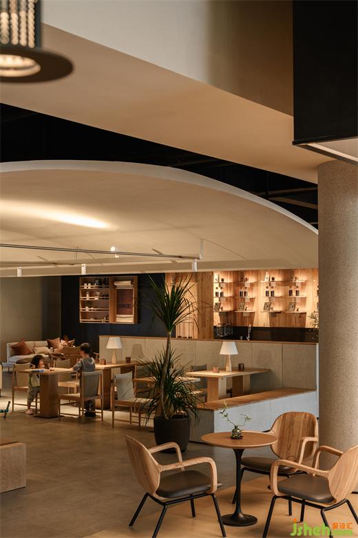 面對這樣一個承載著這樣的復合業(yè)態(tài)的空間,我們改造上既需要盡可能通過連續(xù)性開放性的空間保證運營方日后的靈活使用,再通過柔性的手法來塑造空間的邊界,劃定領域范疇,在保證合理的安置好餐、酒、咖啡吧等商業(yè)功能外,更重要的是以場所為媒介為社區(qū)的人們提供一處具有社區(qū)服務性質的公共空間,為社區(qū)的人們提供了一個自我學習與親子相伴的空間,人們也這里相聚、約見。